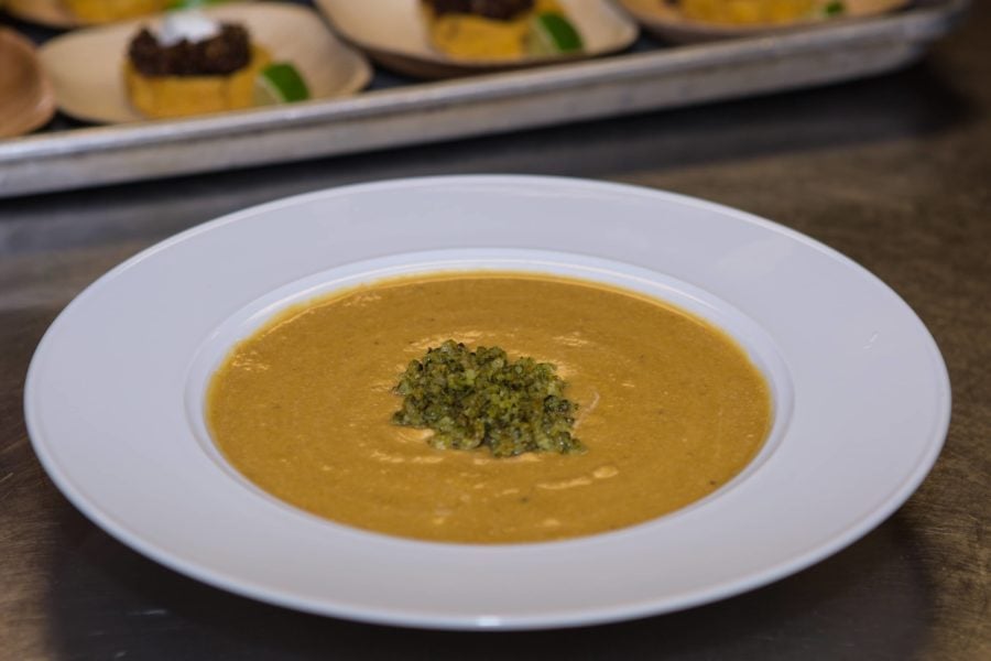 • While soup is simmering, combine all gremolata ingredients in a food processor. Pulse until walnuts are chopped, about the size of rice.