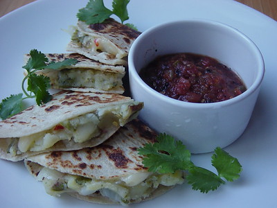 Portion: 2 quesadillas, 1/4 cup salsa