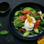 Poached Egg & Anchovy Spinach Salad with Broccoli Spiked Guacamole