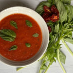 In a blender, combine tomatoes, red wine vinegar, Dijon mustard, tomato paste, chili flakes, salt and pepper.While blender is running, drizzle in olive oil until emulsified.Stir in basil.